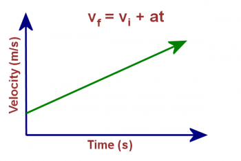 Presumably, by now, your students have seen this graph, and you've shown them that the acceleration is actually the slope of this line (it's a line in the form y = mx + b, only with different variables). And in high school physics we tend to focus our attention on these kinds of "constant mass" problems, specifically because they produce problems within the reach of high school students.