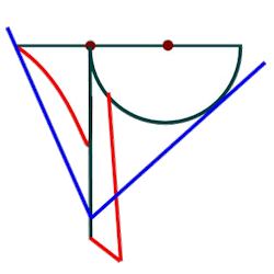 With the tomahawk in this position, the angle is trisected by the "handle", and by the line (not shown) connecting the angle vertex to the center of the semi-circle. A geometric proof of why the angle is trisected is within the reach of high school geometry students, and makes a great conclusion to the project.