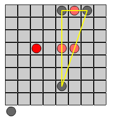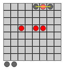 The following image is a simple "Entrapment" puzzle. There are four red dots, and four gray dots.