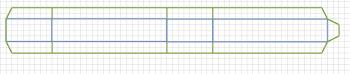Fold backwards all the vertical blue lines, and fold foward all the horizontal ones. Note that it is often easier to fold all the creases away from your scoring, and then reverse the ones that need to fold forward. Turn the piece into a rectangular loop, and glue the tab shown on the right over the back of the opposite side to make the loop permanent.
